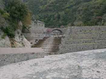 mensen die vanuit Dafni naar 1 van de kloosters vertrok op de andere zijde van