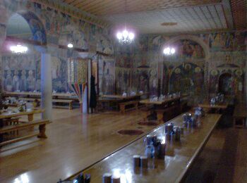 dus minder strikt dan in Dionisiou waar er een monnik stond voor te lezen