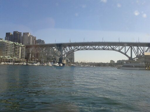 Uiteindelijk staken we het water over met een klein bootje en kwamen we terecht in Granville Island waar onze lunch gepland was. Dit gedeelte was meer toeristisch dan andere delen van de stad maar zeker gezellig, er waren allerlei kleine winkeltjes, een overdekte markt en restaurantjes.