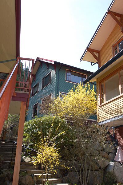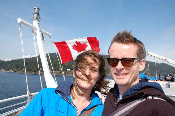 Op de planning staat een dagje Bowen Island: eerst nemen we de metro, dan de bus en dan een stukje met de ferry. Wat een uitzicht van op de boot! We hadden geluk met het weer: geen wolkje aan de lucht, zalig! En onze jassen die konden we gerust thuis laten!