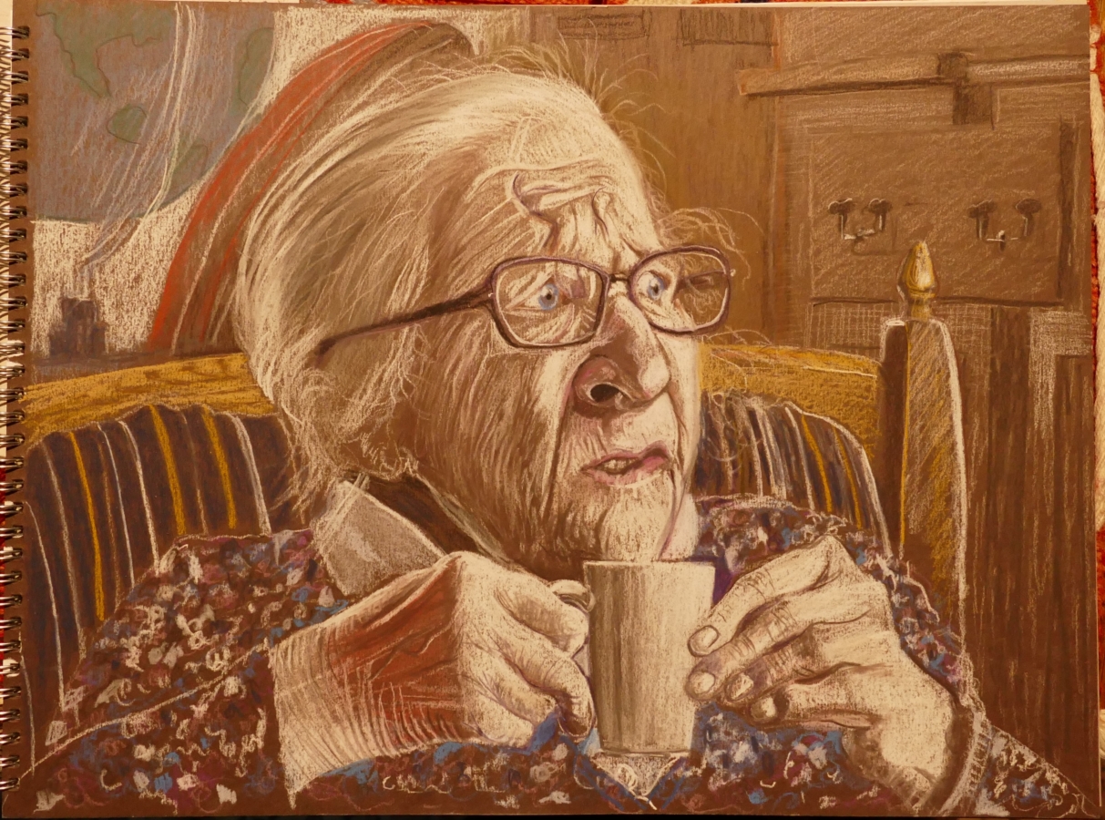 [Oude man (JB, pasteltekening, vrij naar Rembrandt)]