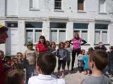 Deze woensdag hadden we bezoek van 4 buitenaardse wezens (stagiaires) die de wereld op zijn kop kwam zeggen! En het waren rare wezens: ze hadden hun kleren binnenstebuiten of achterste voren aan en ook hun schoenen waren verkeerd. En deze buitenaardse wezens hadden graag gehad dat onze kinderen dat ook deden. Dus mama's en papa's: jullie kinderen hadden zich vandaag niet vergist) De kinderen deden allerlei "rare spelletjes", zongen leuke liedjes en maakten een tentoonstelling.