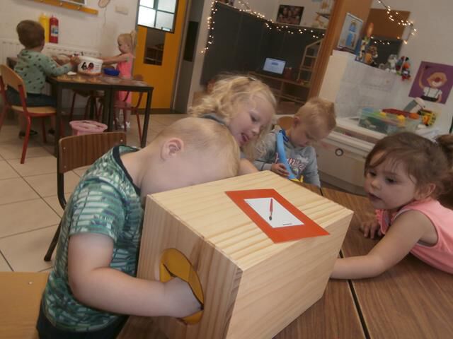 Schilderen, je kleuter mag een grote schoendoosdeksel meebrengen