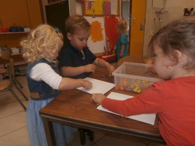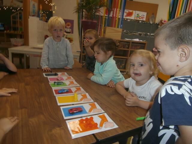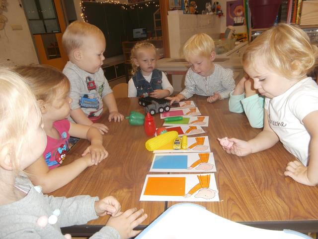 sorteren per kleur en daarna de foutjes die de juf maakt ontdekken.