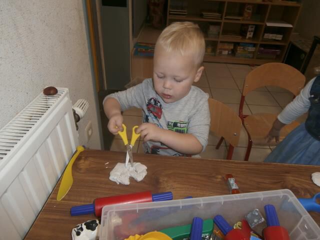 Ons liedje kriebel krabbel kennen we al bijna. Van de juf mogen we op mama en papa oefenen.