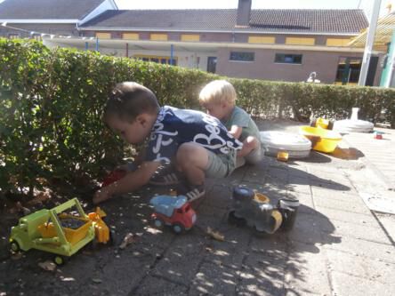 Mathis en Simon kunnen nog eens  lekker graven tussen de struiken.