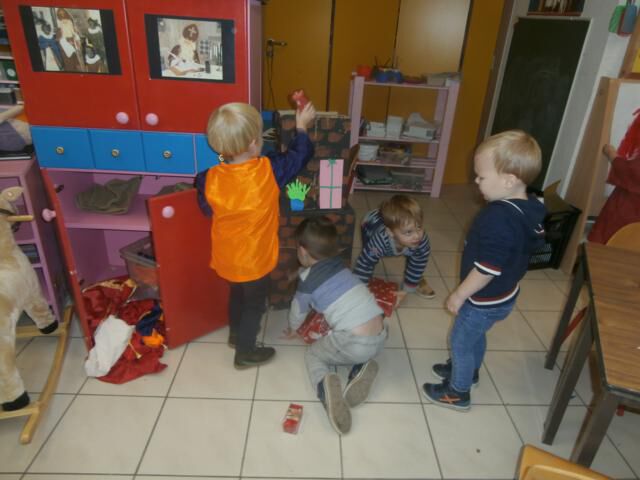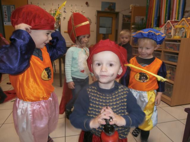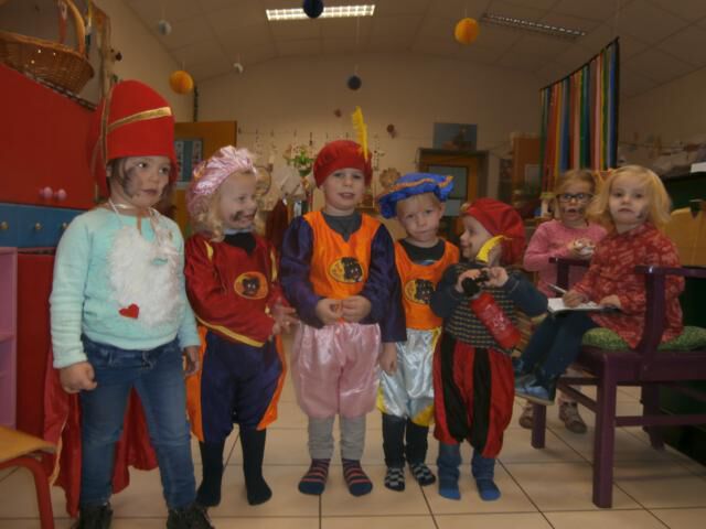 we spelen 'ik zet mijn schoen' na:  onze schoen zetten met een wortel, tekening en flesje drinken. Gaan slapen. Sint en piet komen om de schoen met lekkers te vullen.