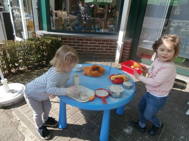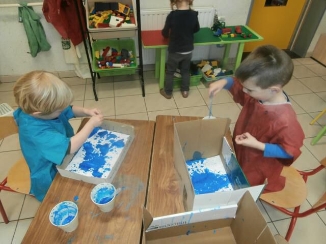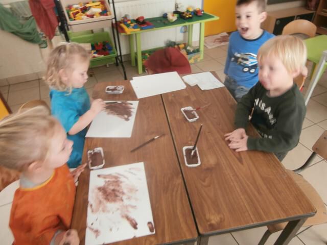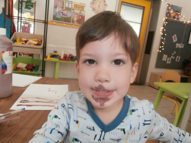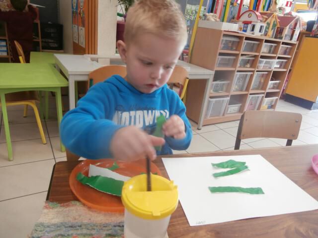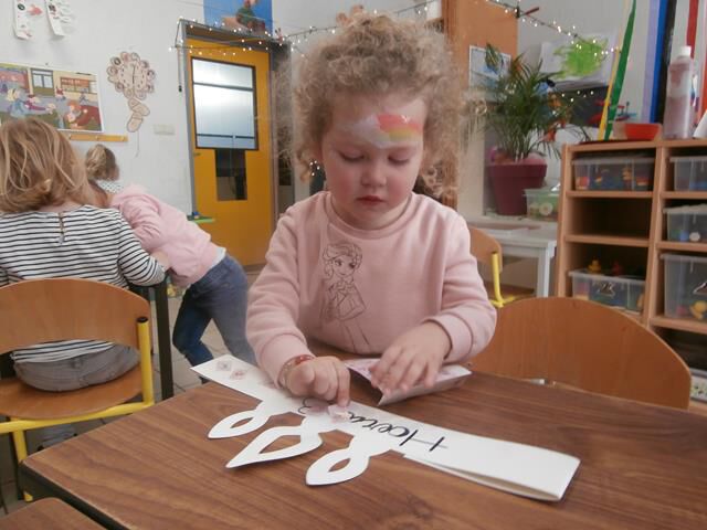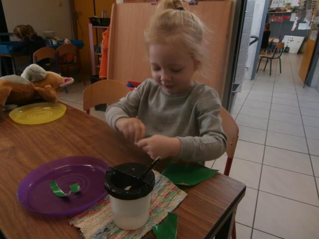 Op verschillende manieren vertel ik deze week het verhaal en de kleuters maken met verschillende technieken de stappen uit het boek.