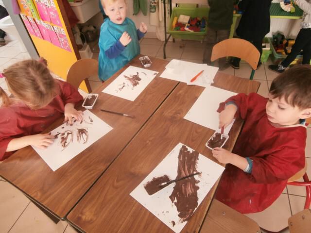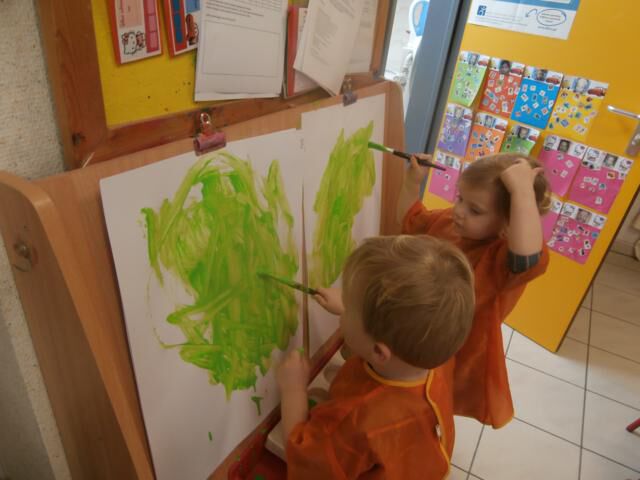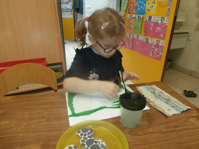 De kip in het gras: we moeten een cirkel rond de kip tekenen en mogen alleen buiten de cirkel schilderen. Goed opletten.
