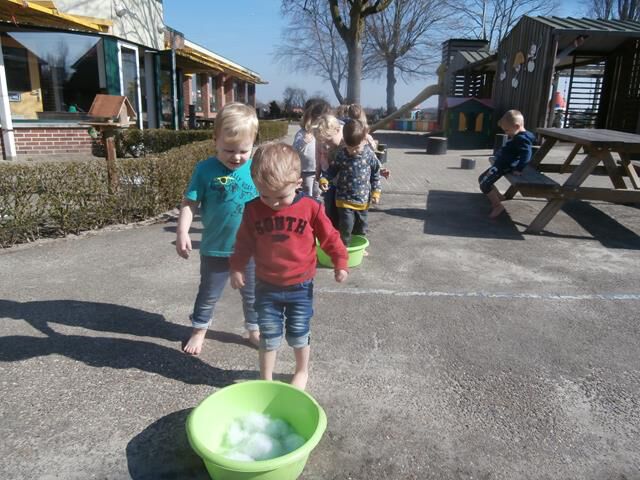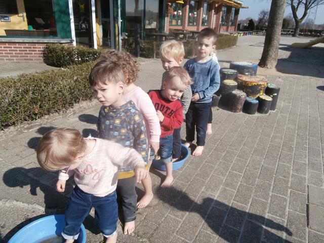 De schoenen en sokken uit en dan zijn we er klaar voor.