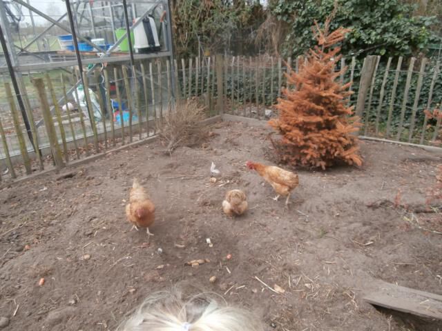Het hok had ook een beetje nieuw stro nodig, en in de voerbak nog wat graantjes. Iedereen moest een beetje helpen.