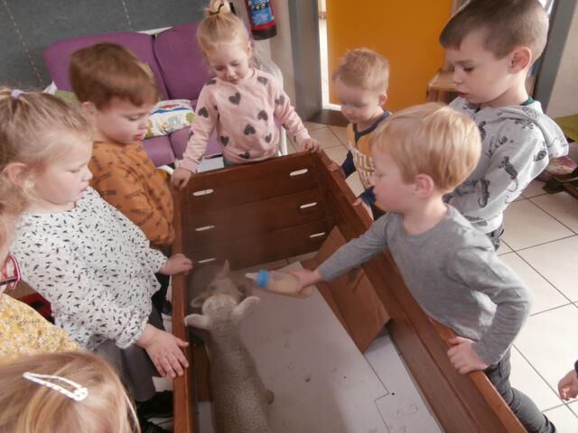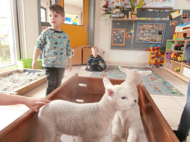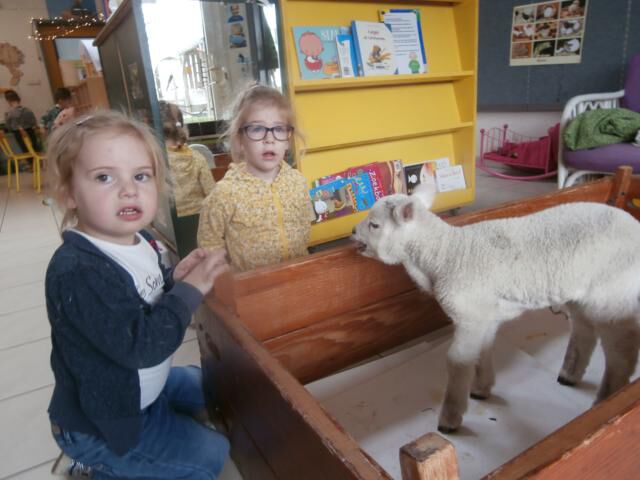 Eerst was er plaats voor ons in het stalletje en daarna voor de lammetjes. (Alissa vond het eerder vlammetjes)