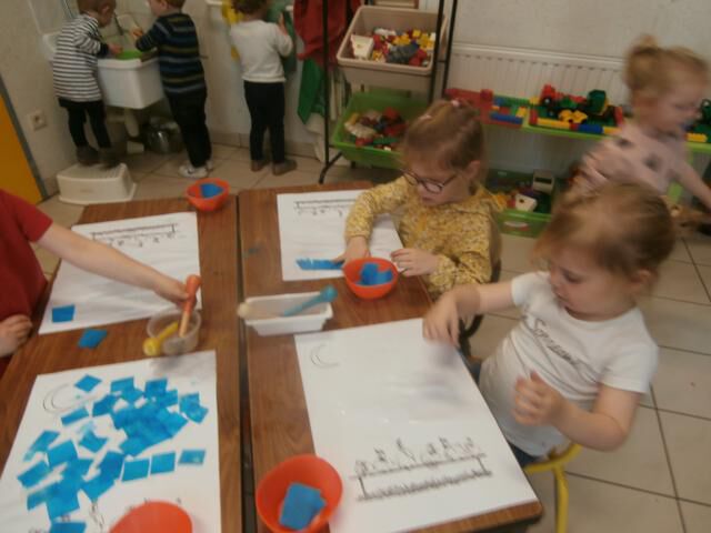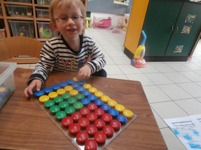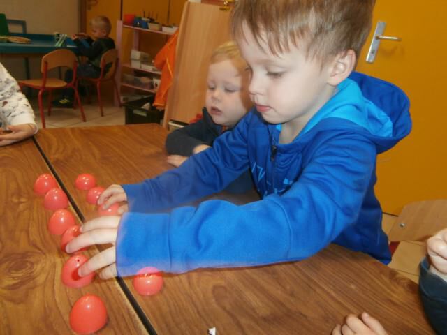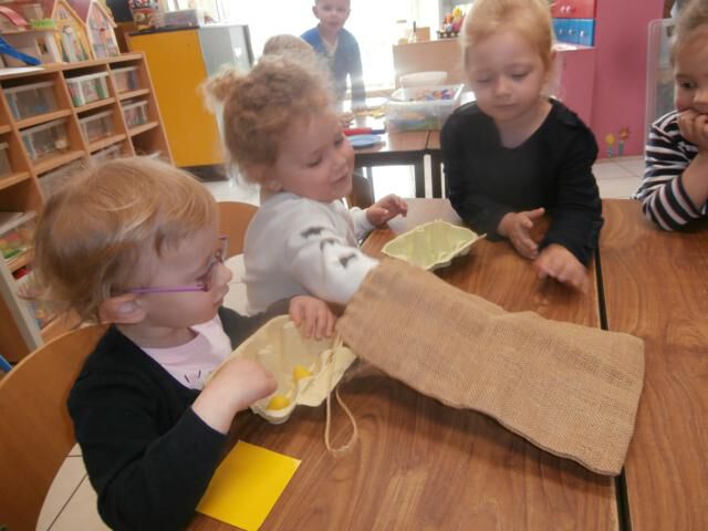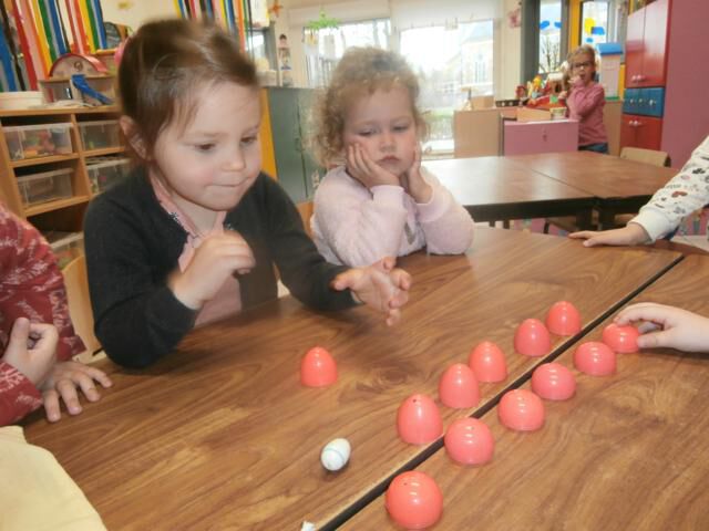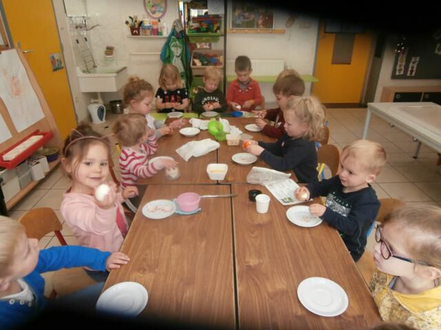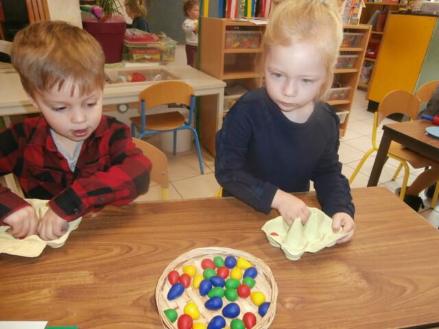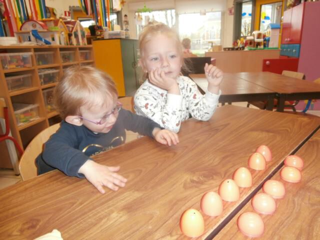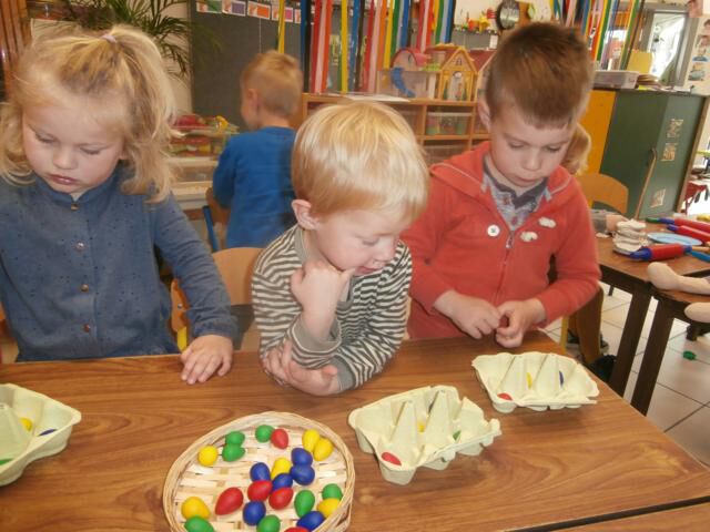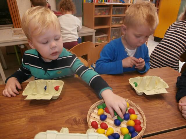 Dinsdag            :we gaan kijken, tellen en naleggen van gekleurde eitjes in een eierdoos van 6