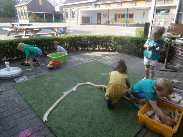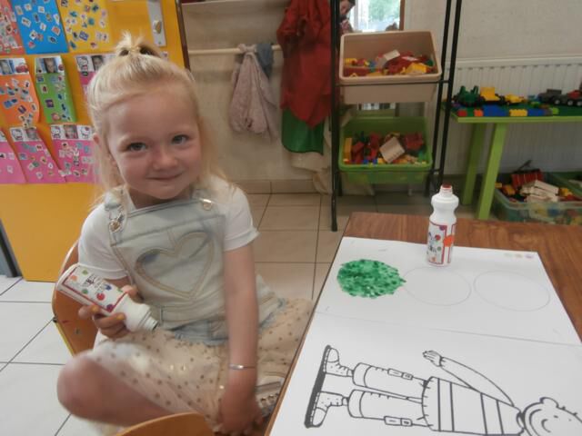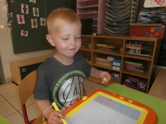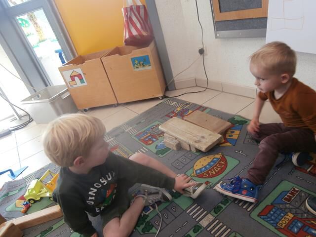 De kleuters mogen het voorzichtig bij mekaar proberen. Het mag ook bij mama en papa, alleen moeten jullie betalen met een snoepje of kusje hebben we afgesproken.