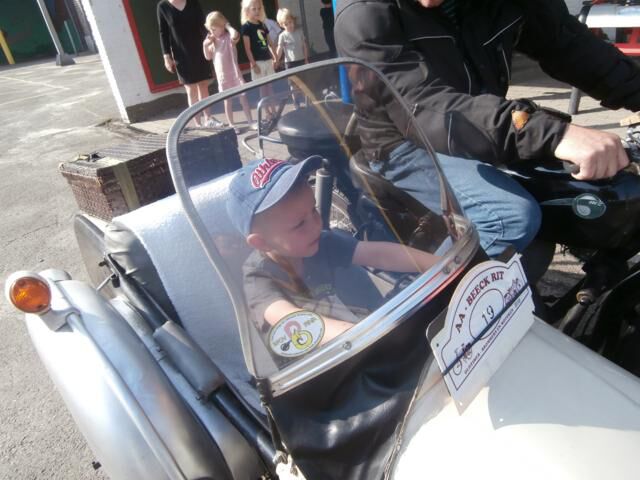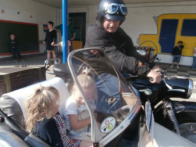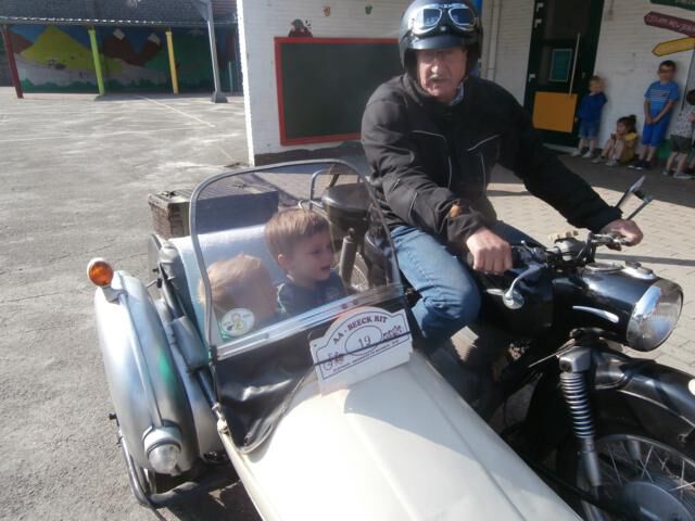 Jan op bezoek met zijn sidecar.
