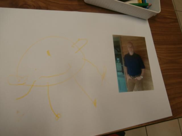 Eerst kijken we heel goed naar papa op de foto en daarna proberen we hem te tekenen.