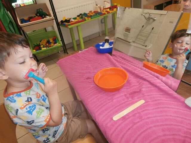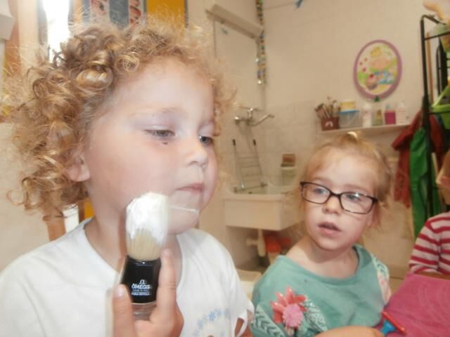 we scheren ons gelijk papa dat doet. (het krabbertje is zonder mes, helemaal van kunststof)