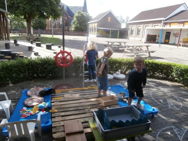 In de klas lag er een stuurwiel. Waar zou de boot zijn?