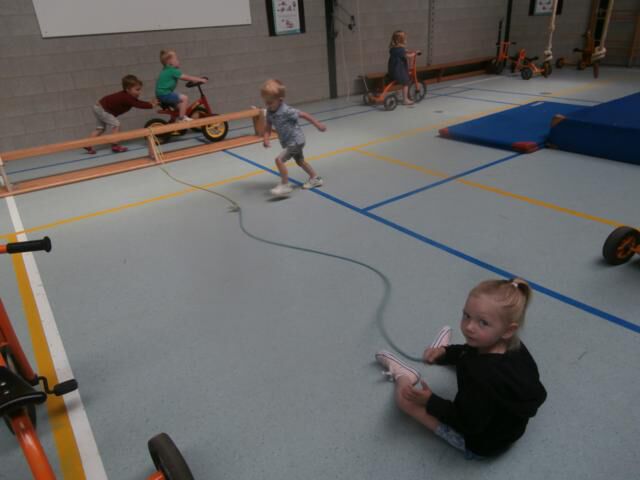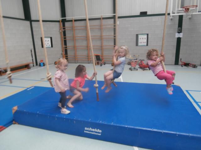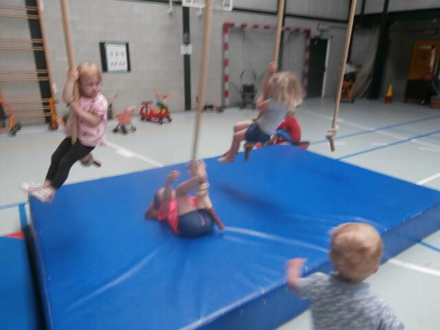 een touwenparcours in de turnzaal
