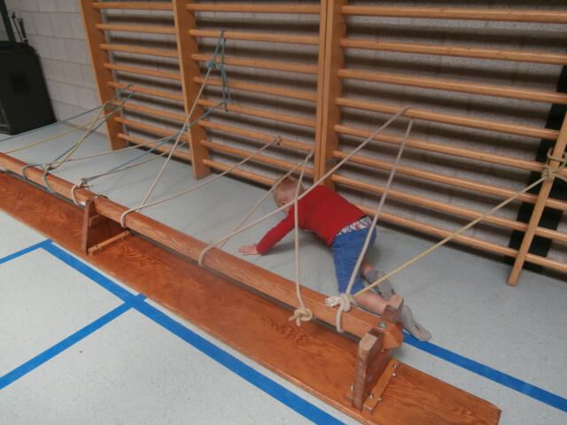 Een touwenparcours in de turnzaal