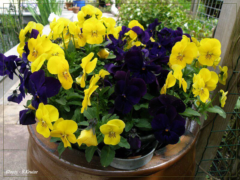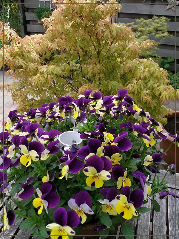 De viooltjes bloeien nu volop. Wij hebben ze in bakken op diverse plaatsen in de tuin staan. Heerlijk om er naar te kijken en te genieten.
