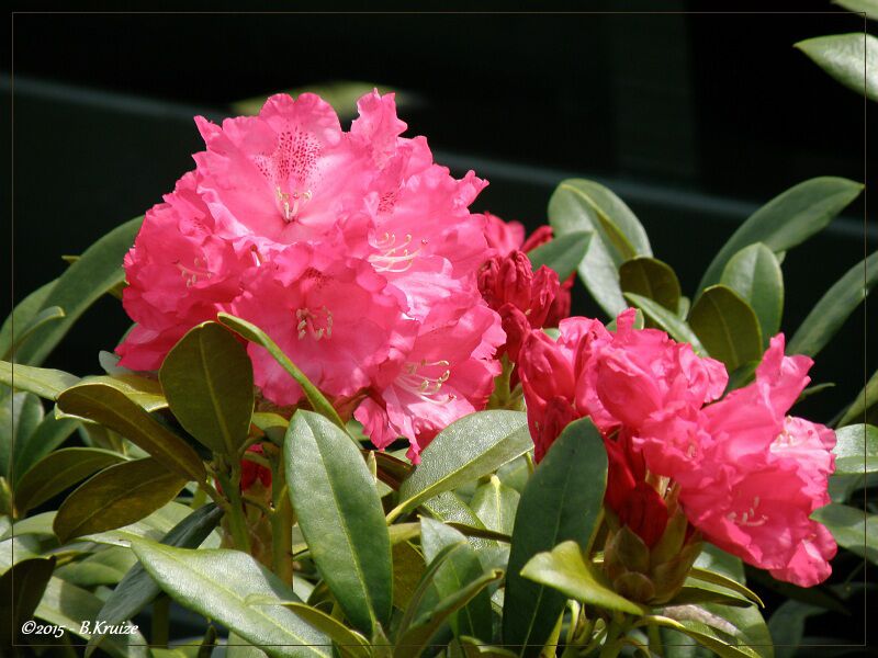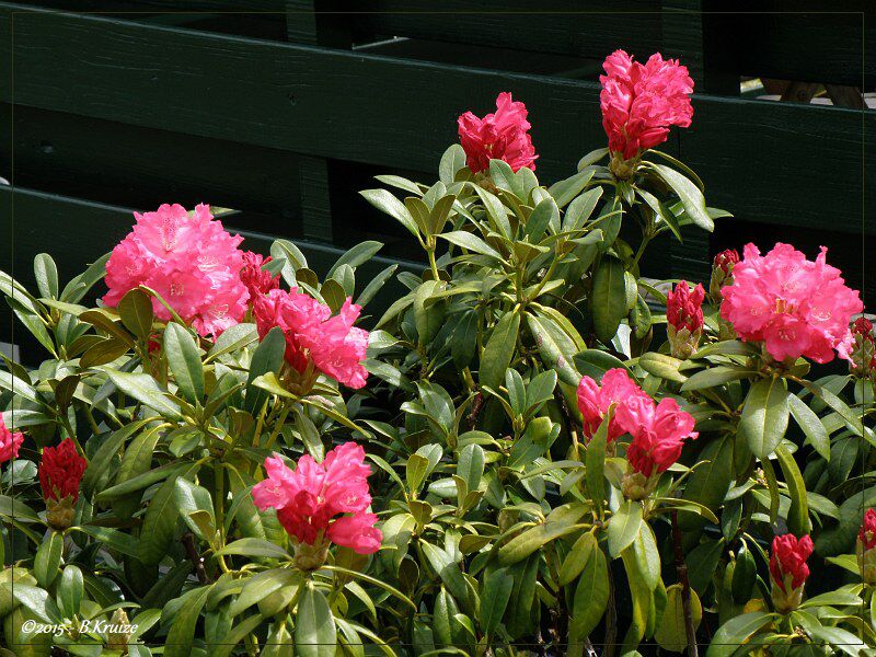 Ook de Rhododendron begint nu te bloeien. Zijn roze bloemen komen mooi uit, tegen de groene schutting van de buren. Dit jaar hebben voor het eerst Dropplanten uitgezaaid. Al eerder in de blog, hebben we de zaailingen gefotografeerd en geplaatst. Deze week konden ze worden uitgepoot in de tuin. De plantjes waren gemiddeld 8 tot 10 cm groot. Nu afwachten hoe het verder gaat. Als de resultaten goed zijn, zullen we in 2016 weer zaden aanschaffen en uitzaaien.
