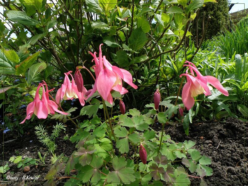 De Akelei staat er weer zeer rijk bloeiend bij. Vorig jaar er zaden van geoogst. Deze uitgezaaid, maar zijn nog te klein om te verspenen / verpoten. Wij houden u op de hoogte van de resultaten.