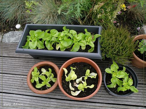 Aardappel in emmer (26-6-2015) Ook hebben we wat sla plantjes in een bak en bloempotten geplant. Wij houden u ook op de hoogte van het resultaat.