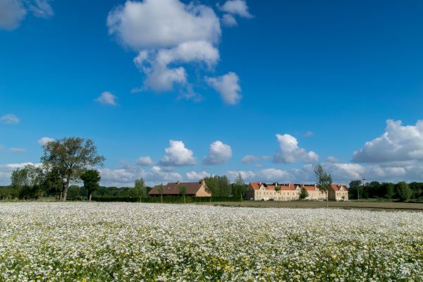Een heerlijk tochtje langs een fantastisch fietspad: "Het Stroroutje", (de oude spoorweg Ieper-Roeselare). Een pad recht door wei- of akkerland, tussen struiken en bomen, natuurlijke begroeiing. Regelmatig kwam ik andere fietsers of wandelaars tegen. Iedereen wilde toch wel genieten van dit heerlijk weertje. Ondanks dat coronavirus, ... of misschien net daardoor! Want tussen die vele natuur-genieters ontdekte ik tal van gezinnen met kinderen. (Op dinsdagnamiddag zou dit in normale situaties niet kunnen hé!) De bloesems, de eerste bloempjes, de weiden, alles kleurt weer mooi! Hier en daar merkte je zelfs vlinders. (Tot 3 x toe fladderde een citroengeel vlindertje rond.) Mijn fietstocht liep tot het kasteelpark in Zonnebeke. Een prachtig domein, een uitgestrekt park met het museum "Passchendaele 14-18", de moeite om eens te bezoeken! Ik wist daar opnieuw een geocache te strikken! Nog wat verder gefietst tot het bos van "Den Doel".