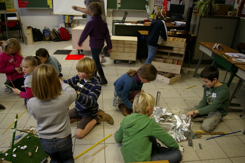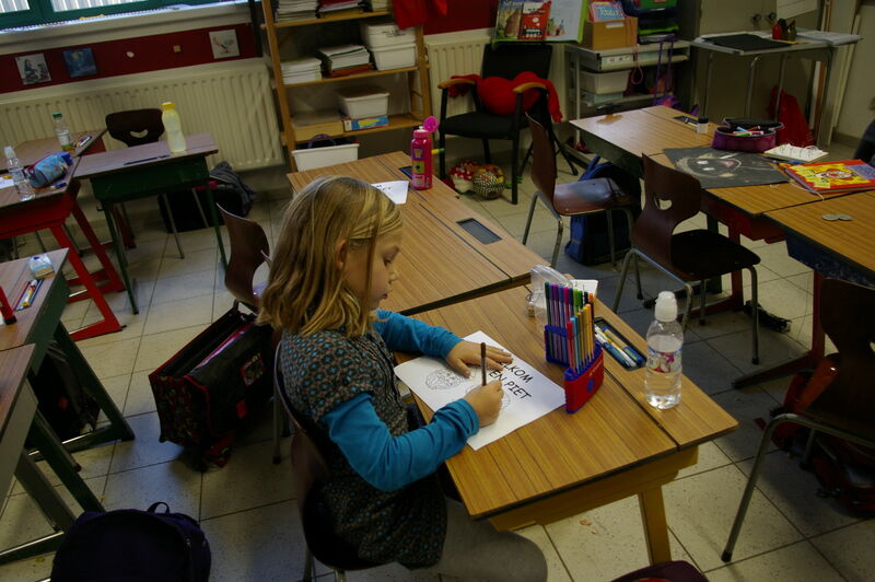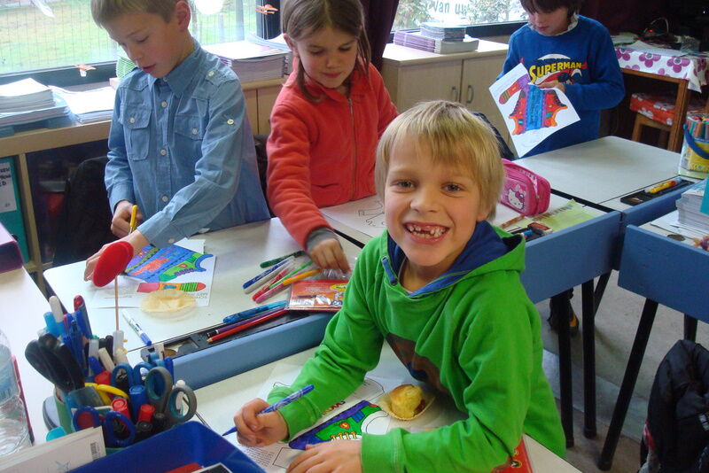 Terwijl meester Lander een deel van de klas begeleidt bij het maken van een kwartetspel over Sinterklaas, bakt het andere deel de muffins bruin.