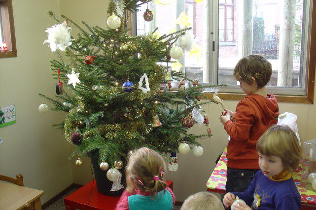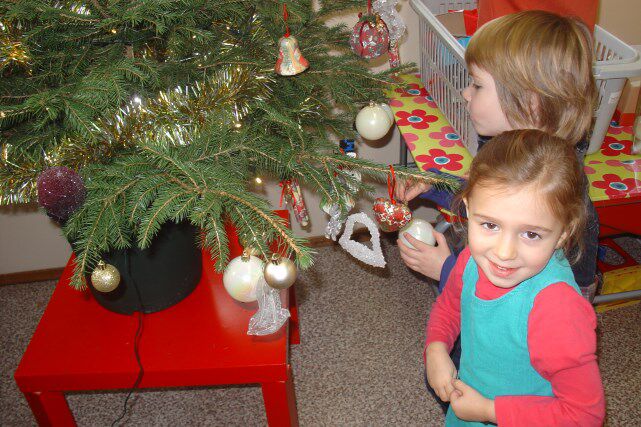 Daarna heeft Sarah, Douwe, Wout en Cato me geholpen met het versieren van de kerstboom.