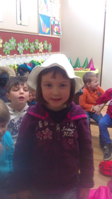 We bekeken en pasten de hoeden in de kring. Daarna gingen de hoeden naar het huisje waar de kleuters zich talrijk mee kunnen verkleden.