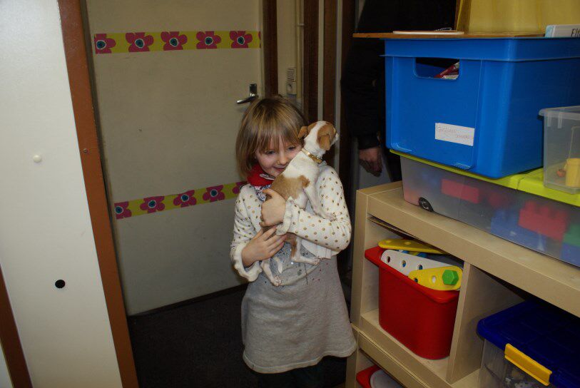 Deze week kregen we bezoek van een wel zeer kleine gast: het hondje , Pruts van Femke!