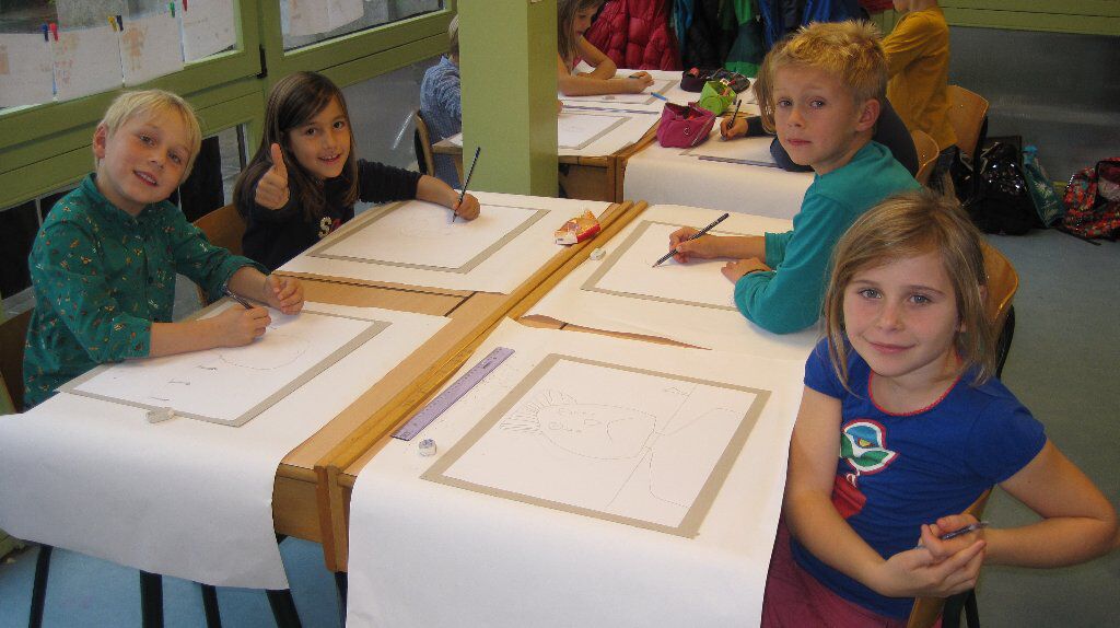 Ieder hielp aan een deeltje van het 'pannenkoekenbaksel'.