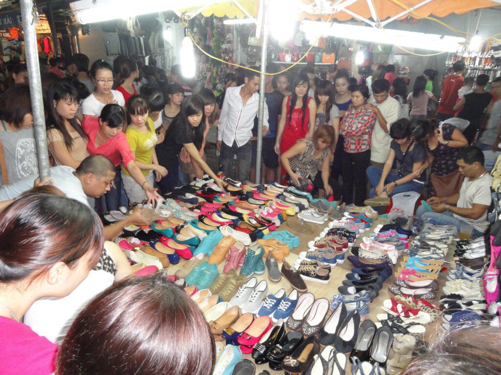 In Hanoi toegekomen is het nacht markt. Miljarden schoenen en kleedjes en evenveel vrouwenogen die schitteren en blinken. We laten ons mee stromen met de meute. Het is hier echt heel gezellig. Of toch een 120 decibel mutant van gezellig.