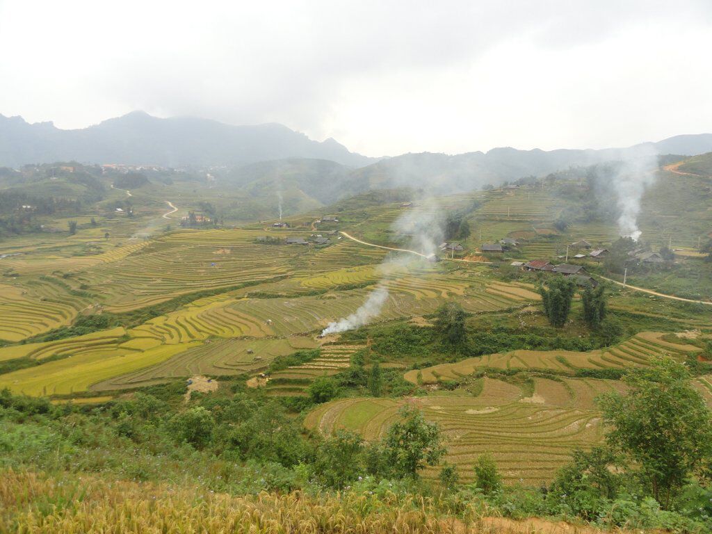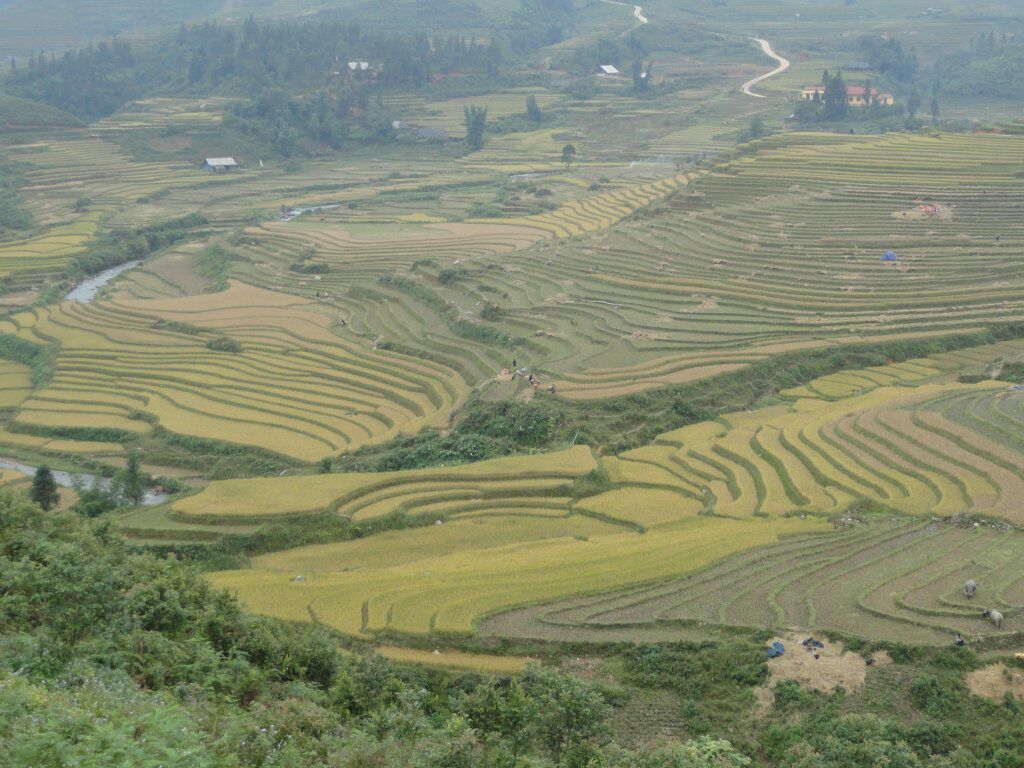 Sapa is een bergdorp omringd door boerderijtjes van rijst terrassen op de flanken van de bergen rondom. Met een brommertje rijden we wat op goed geluk in het rond en bezoeken de lokale boeren die juist bezig zijn met de oogst.