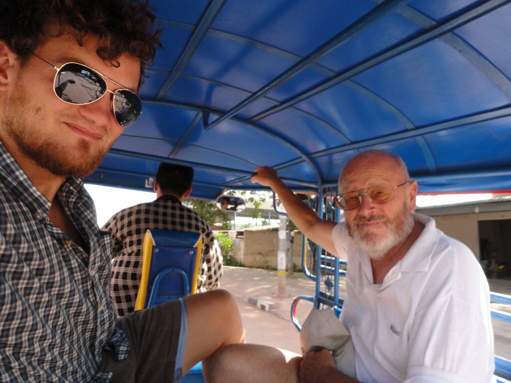 De laatste dagen waren heel spannend. We hielden continu de kranten en het nieuws in de gaten. Wordt de luchthaven van Bangkok afgesloten of niet? Uiteindelijk bleken de dijken het hoogtij grotendeels in toom te houden en verliepen onze vluchten normaal. En terwijl Guy en ik onze immigratiedocumenten de nodige aandacht schenken, horen we opeens een opgewekt vrolijk jolijt juichen vanachter de douaniers: Steeeveeen! Inneke en ik zien elkaar terug na twee maanden afstand en een paar dagen bang afwachten. We moeten plots onze omhelsingen even stop zetten want Guy wordt achtervolgd door een strenge Thaise officier: hij heeft blijkbaar niet alle vakjes correct ingevuld. Dat is niet zijn sterkste kant heb ik gemerkt bij onze grensovergangen in ZOAzië, alle vakjes correct invullen. Als hij dan uiteindelijk ook het land in mag is de ontlading groot dat we allemaal veilig samen zijn.
