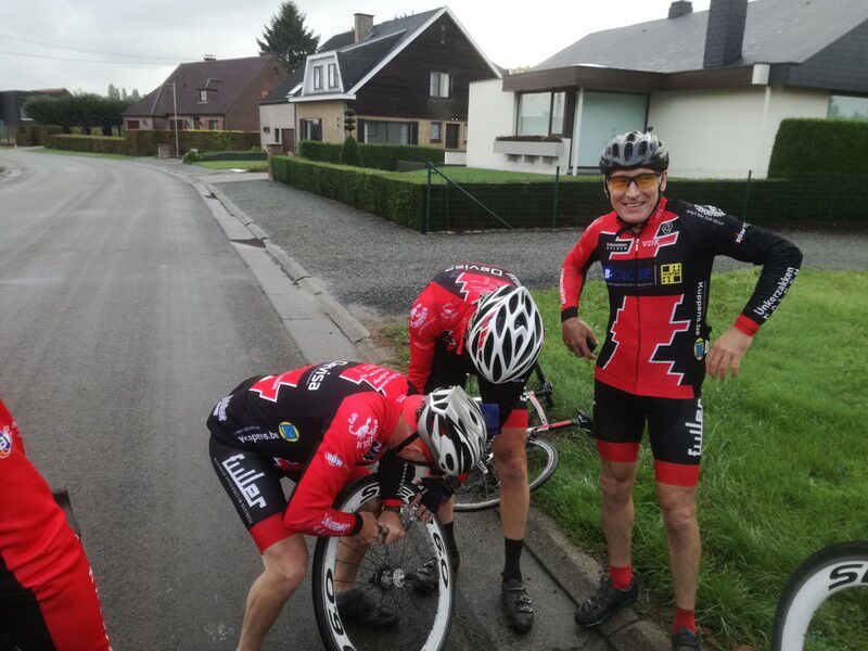 We vertrokken met een nat wegdek maar een felle zon via Beervelde richting Destelbergen. Net voor Destelbergen werden we getrakteerd op de enige maar wel felle regenbui maar de zon nadien maakte alles goed. Na een technische pitstop in Melle waren de troepen even uit, elkaar geschud maar geen n paniek... in nood kent men zijn...GSM. De rit verliep verder naar Oosterzele en deelgemeenten zonder verder oponthoud. In Massemen maakten we nog een klein lusje richting Oordegem om na 69 km te eindigen in ons clublokaal. Een noemenswaardige actie van deze voormiddag komt toch op naam van Gerrit die het aandurfde om alleen te starten en zo toch ook 32 kilometers fietste, met kniepijn. Chapeau. We waren opnieuw met 12 wat heel aangenaam is om te fietsen. Bedankt aan iedereen!!!