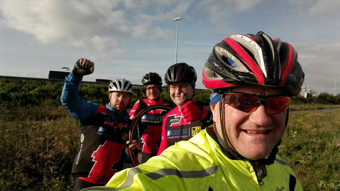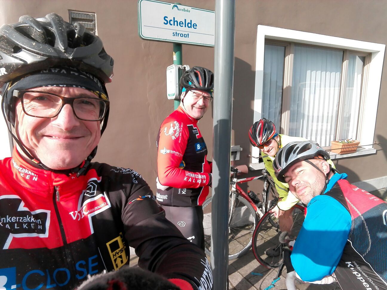 De rit van zondag 15/10/17 zal de geschiedenis ingaan als een fietstocht die vertrok op 4 wielen. Om half acht was de parking van café de Schorpioen al goed gevuld met 11 gemotiveerde coureurs. Onze bolides brachten ons naar Sint-Pauwels. Daar aangekomen wisselden we naar onze stalen ros. In gestrekte draf reden we richting Doel dat een echt spookdorp is geworden. Na een korte fotosessie reden we verder door het Verdronken land van Saeftinghe en volgden we de Westerschelde tot in Walsoorden. Daar verlieten we de Westerschelde om terug te fietsen naar Sint-Pauwels langs mooie, verlaten en zeer goed bereidbare wegen. Bedankt aan alle chauffeurs (Peet, Jan, Gerrit en Kris) om ons  tot daar te brengen.