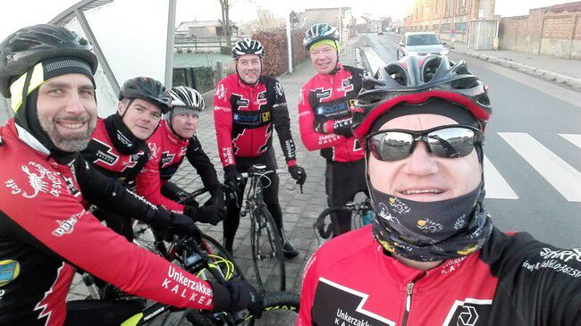 Afgelopen zondag hielden wij onze 3°nieuwjaarsreceptie. Daarvoor, om 09.00u., waren er 6 dappere renners die de weergoden (wind en regen) trotseerden en hun zondagse fietstocht reden. Een tocht van 53 km met 185 htm. De gelukkige gemeenten die ons mochten aanschouwen waren Wetteren, Massemen, Oordegem, Bavegem, Letterhoutem, Vlierzele, Zonnegem, Burst, Bambrugge, Vlekkem, Papegem, Impe, Wanzele, Wichelen, Uitbergen en finally natuurlijk Kalken.