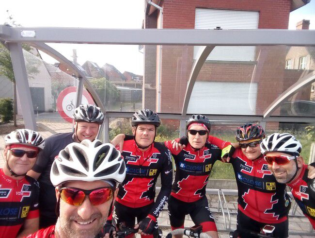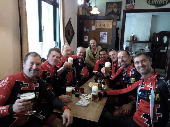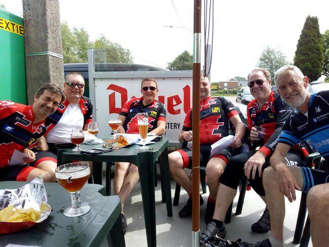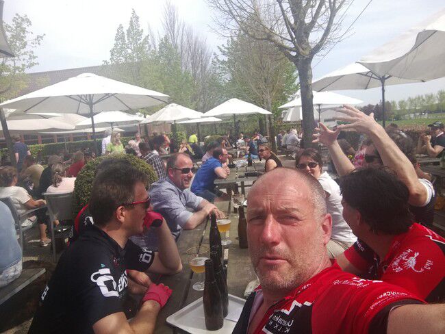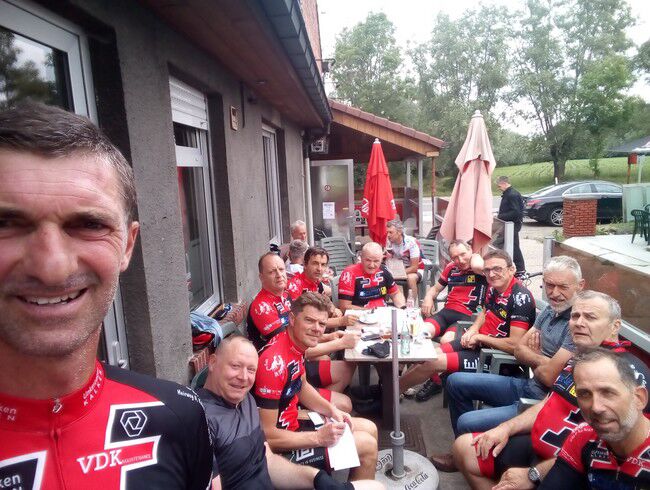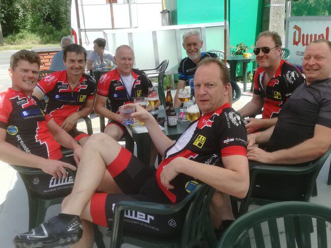 In de terugweg naar huis besloten 5 renners (Luc, Bertrand, Hendrik, Peet en Filip) om nog wat extra kilometers erbij te fietsen. Zo kwam groep 1 aan 62 km en groep 2 aan 75km. Nadien werd er traditioneel nagekaart bij Moet!