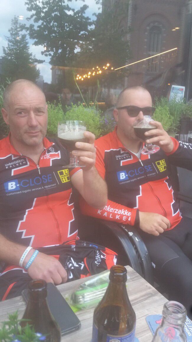 Een bevoorrading die door de loden hitte en het stevig doorfietsen (Geert hing regelmatig ne keer tussen zijn kader ) meer dan welkom was.