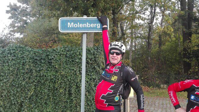 Een verrassend ritje. Twee vertrekkers (Bertrand en Hendrik) startten om 9.00u. en kozen wijselijk voor een tripje van 15' om aan te sluiten bij de groep van 9.15u. Jan nam het voortouw en nam ons op sleeptouw naar de eerste verrassing. Johan wou al zolang eens op de Molenberg fietsten en rarara na 5' waren we er al. (zie foto) Mooi gedaan van wegkapitein Jan. De tocht verliep verder