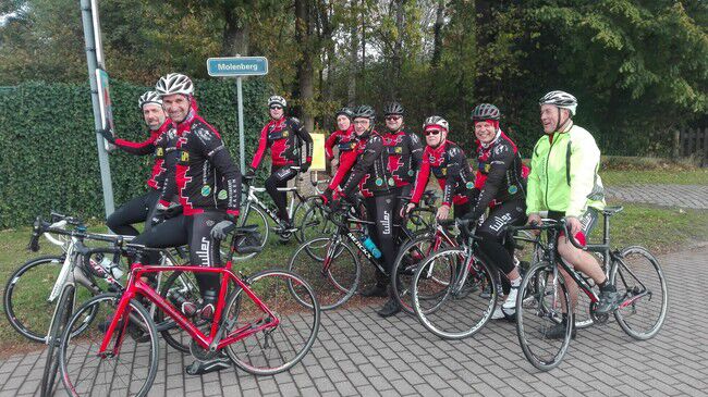 Een aangenaam fietsweertje midden oktober, de thermo-vesten waren van de partij, toch kozen de Peters voor een kort broekske om hun snelle benen te tonen.