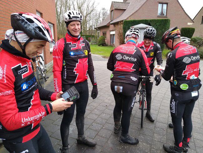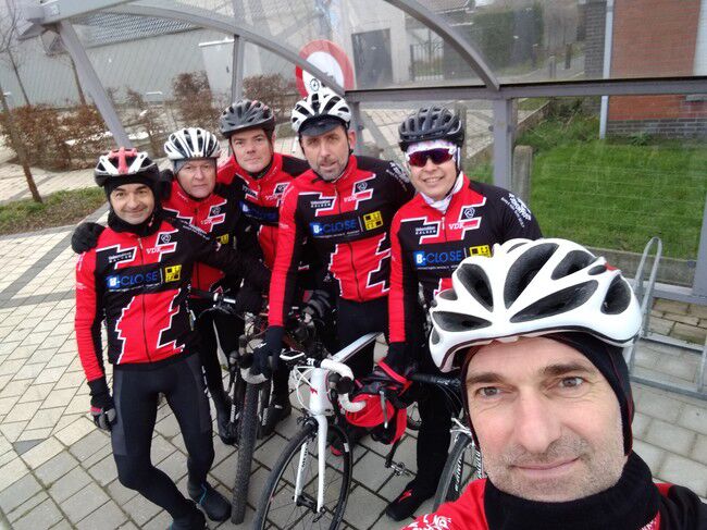 Op zondag 12/01 was de opkomst een beetje minder maar toch nog behoorlijk voor een winterrit met op het einde regen. 6 renners die startten om 9.15u. en 5 renners die aan het buskot stonden te popelen om 9.45u. De definitieve KOTKrit van 51.5km werd verkend en goed bevonden. En, toeval of niet, maar de laatste kilometers versmelten de beide pelotons opnieuw om in een gezamenlijk tempo bij Moet aan te komen. Telepathie noemt zoiets zeker? Op naar volgende week.