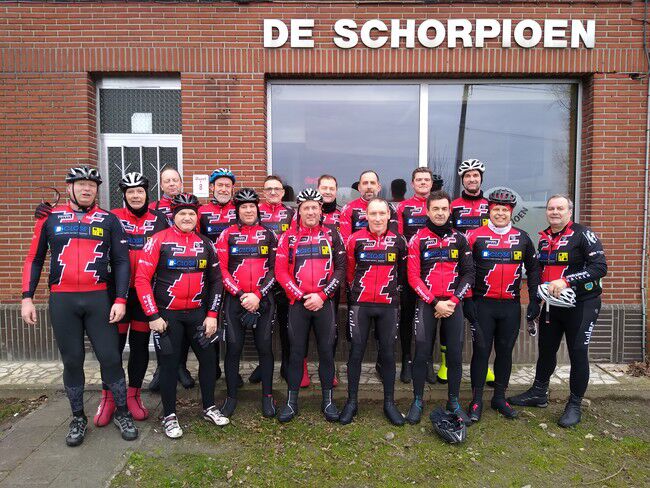 Een speciale dag was het zondag. Niet omwille van één of andere rit, wel gelet op de datum: enkel cijfertjes 0 of 2. Komt zelden voor (om de 10 jaar) vandaar. Een kletsnatte rit vandaag. 7 flandriens vonden het toch de moeite om op het stalen ros, de 9.00u-renners hadden aangesloten bij de 9.30u.-renners, en haspelden samen een tocht af van 51km. Deze fietstocht wordt ook wel eens de Hijfte-tocht genoemd. Je kan allicht raden waarom. Moet verwelkomde ons met droge handdoeken om de modderige gezichten weer toonbaar te maken aan het talrijke Schorpioenpubliek. Waarvoor dank. Op naar volgende week.