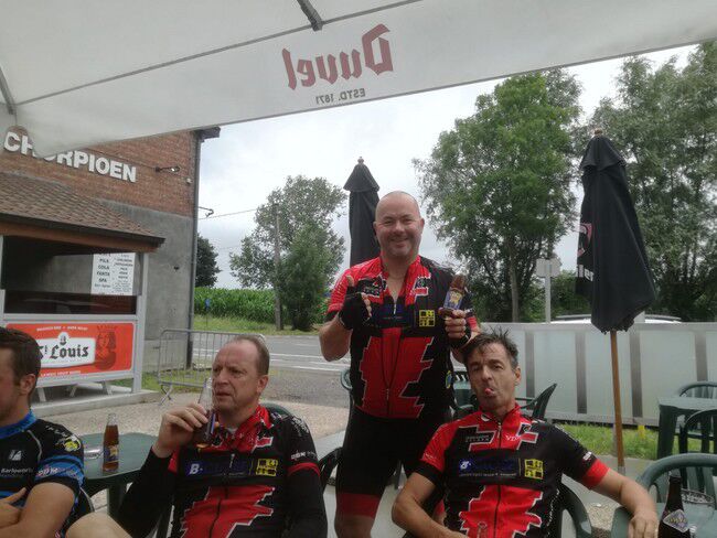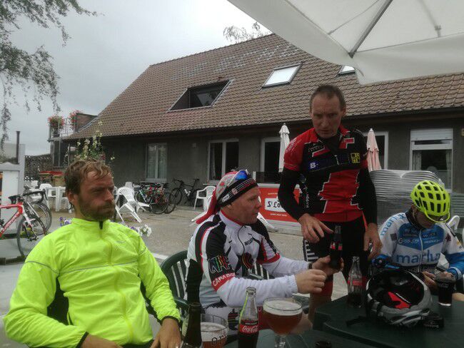 De renners van B vergezelden ons al snel op het terras na een rit van 69km richting Mirabrug.