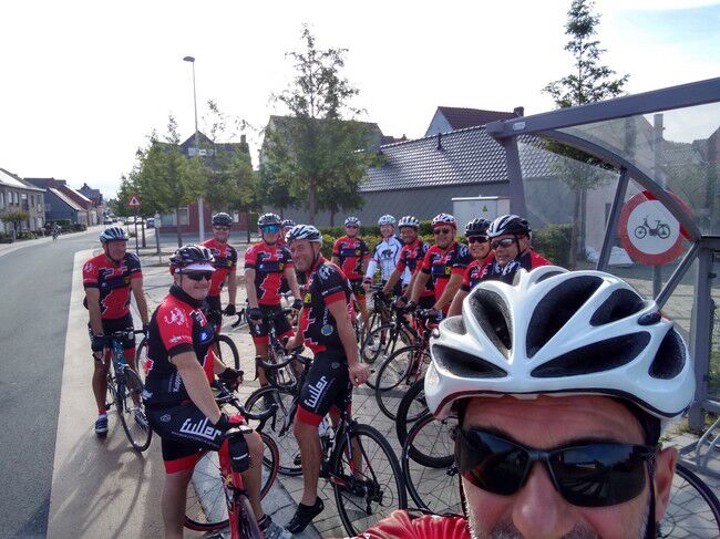 Mooi fietsweertje en 12 renners paraat om 9:00u aan het ondertussen veel te kleine buskot.