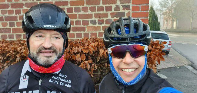 Weekend twee en drie van januari. De unkerzakbikers nemen deze maand een beetje gas terug. Het weer zit wat tegen alhoewel sommigen er zich niets van aantrekken, er komen andere prioriteiten naar voor op zondagvoormiddag, moet blijft gesloten, er zijn weinig perspectieven,... Creatievelingen steken onze uitbaatster van de Schorpioen een hart onder de riem met een mooie leuze op een spandoek. (Jan, Bart, Jo, Davy) Mooi!! Andere bikers houden zich vast een hun nieuw uitgevonden stramien: