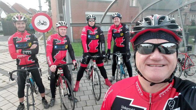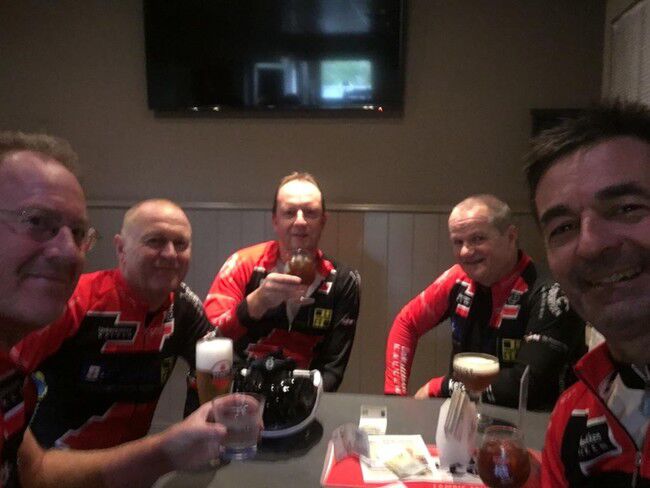 De andere unkerzakrenners kenden een valse start. Er werd om kwart na negen (!!) verzameld maar Johan zijnen band stond plat nog voor hij één cm had gefietst. Wisselen dus voor hem en wachten voor de anderen (Jan, Kris, Peter V.D., Dirk en Hendrik). Een half uurtje later vertrokken zij dan voor een tocht van 54km met een gemiddelde van 27km/u. Op naar volgende week. Fiets ze!!!